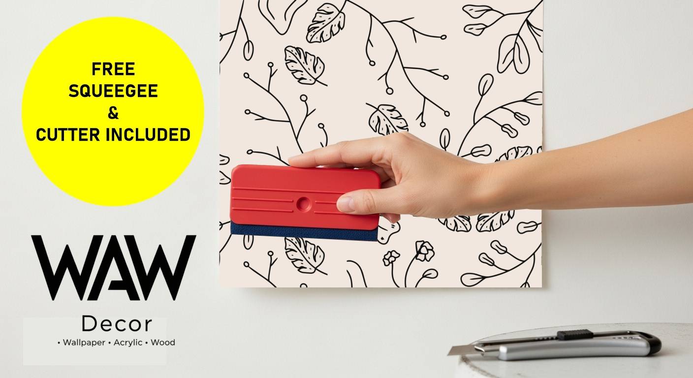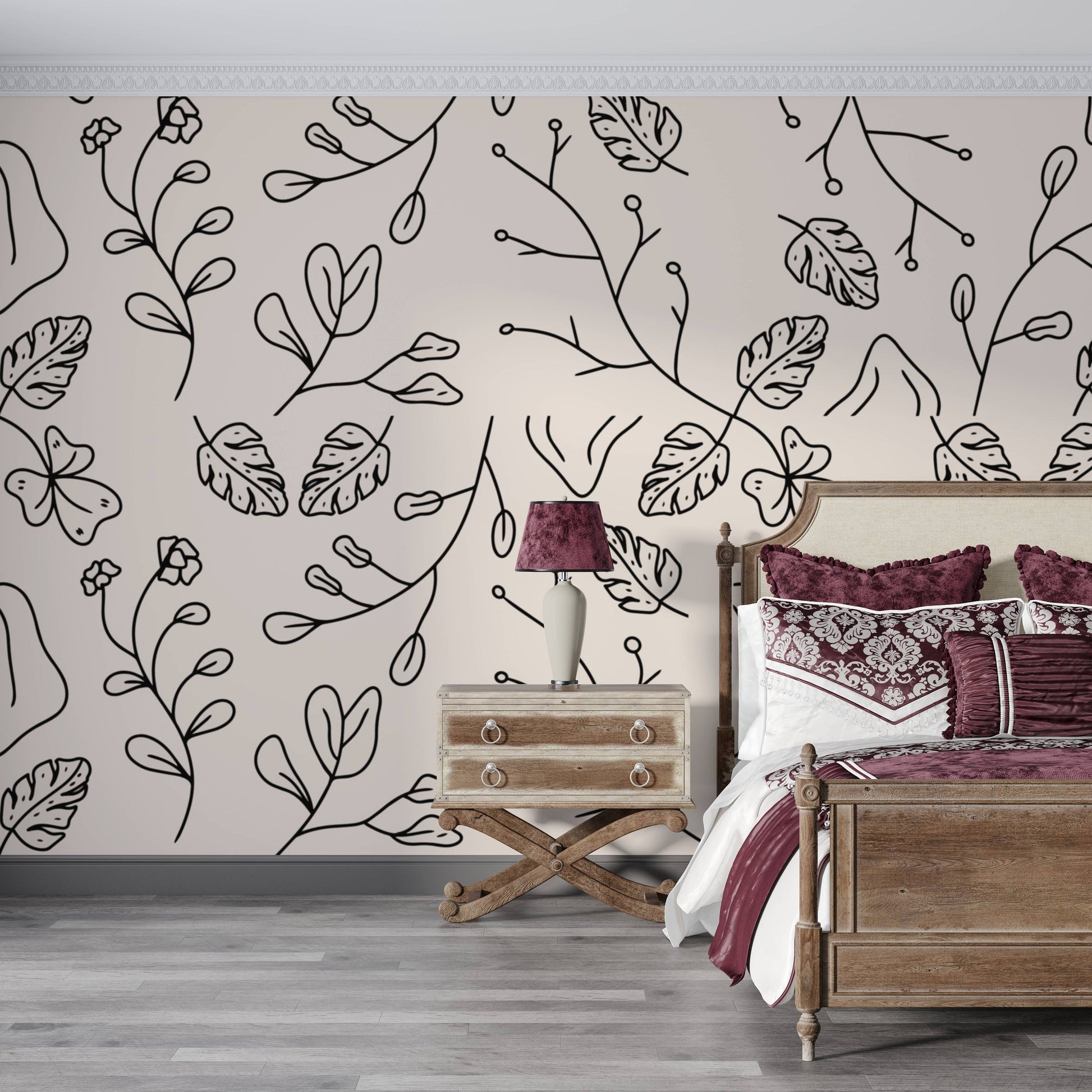 Minimal Floral Line Art Peel and Stick Wallpaper, Modern Botanical Wall Mural, Neutral Aesthetic Removable Wall Decor